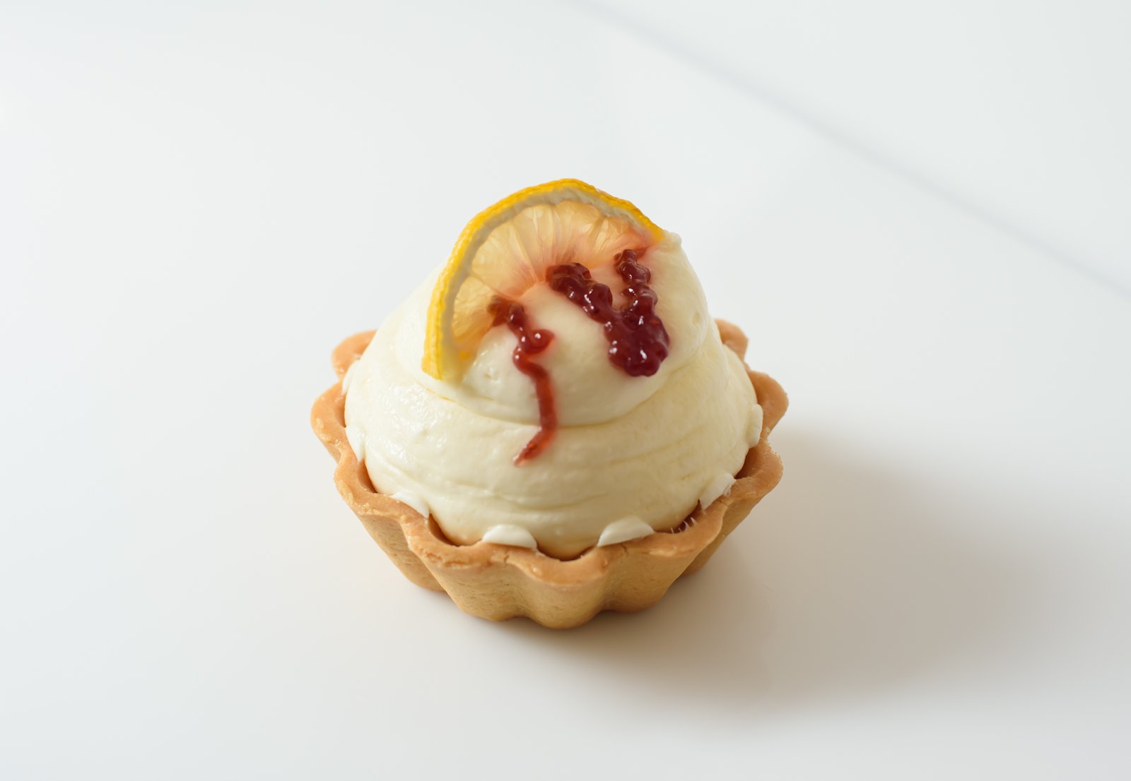 Maślany, kruchy spód wypełniony delikatnym cytrynowym kremem.