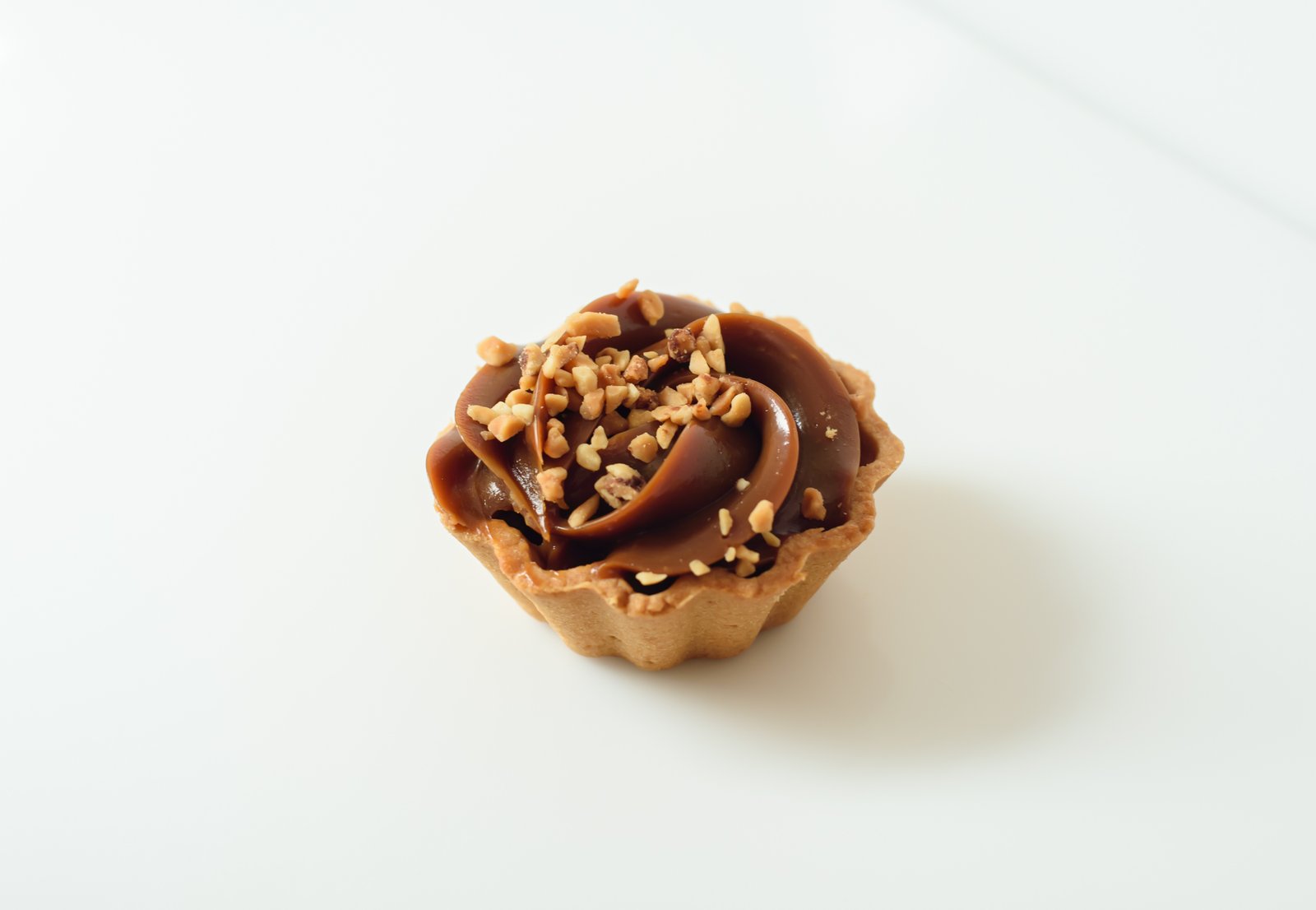 Maślany, kruchy spód wypełniony aksamitnym kajmakiem, udekorowany chrupiącym orzechem włoskim.