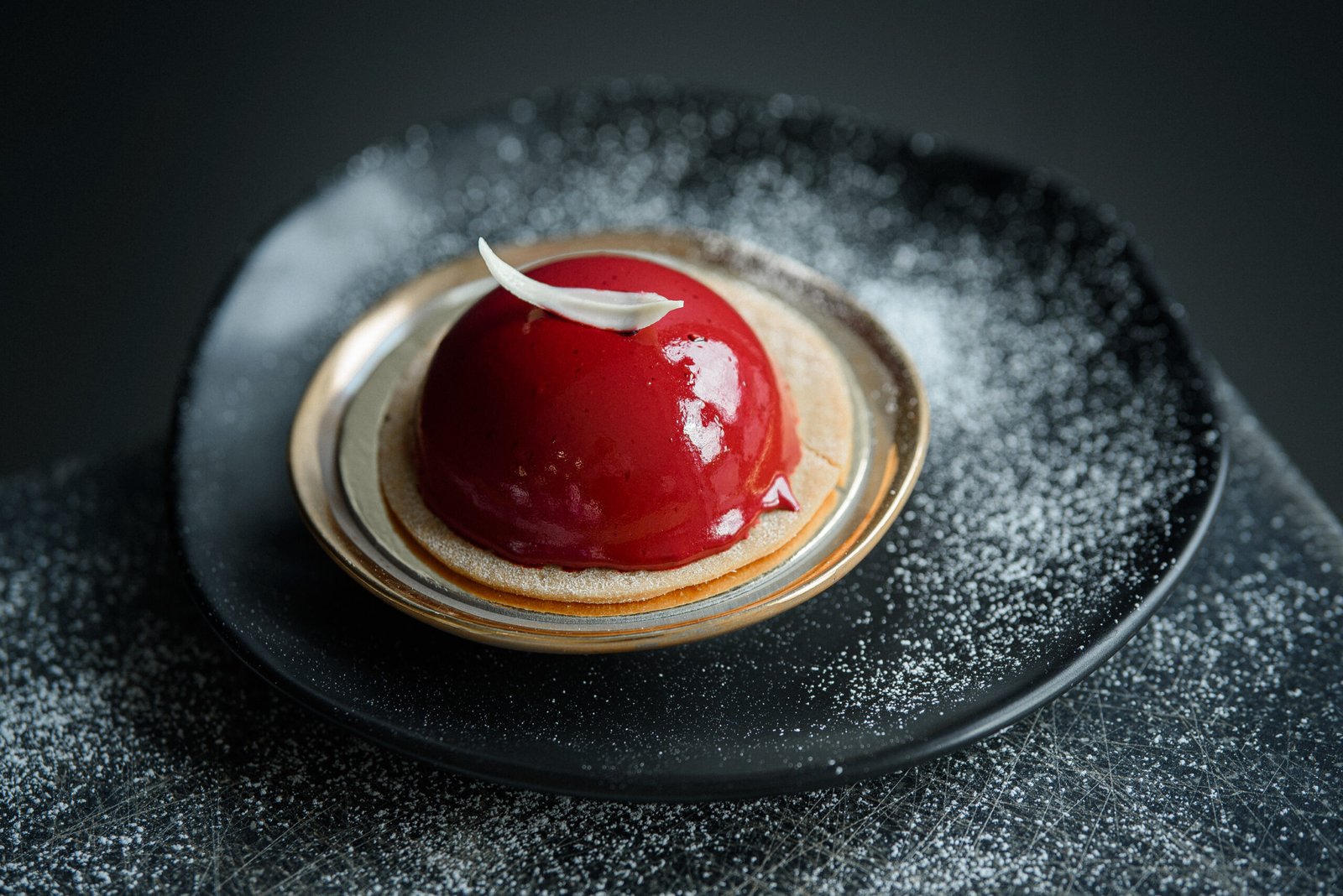 Delikatny deser z musem wiśniowym, pokryty lśniącą wiśniową polewą. Idealny na wyjątkowe okazje.